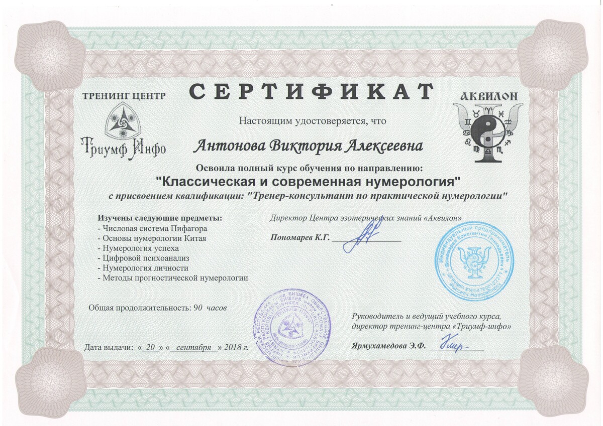 Я очень долго искала, где мне обучиться нумерологии. Я поражена высоким уровнем учебы, рада, что не зря потратила время и деньги… это не последнее обучение в вашей школе. Очень хорошо подается материал, мне есть с чем сравнить. Чувствуется, что преподаватель очень много знает и ему есть чем поделиться.